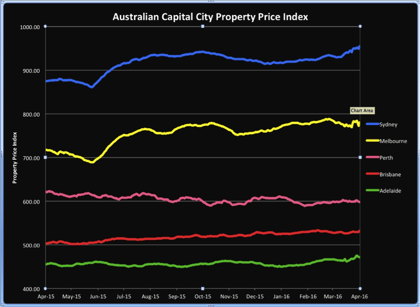 Over the same period, property prices (all dwellings) in Sydney and Melbourne have experienced differing trends (Sydney up 1.01% and Melbourne down 0.56%).